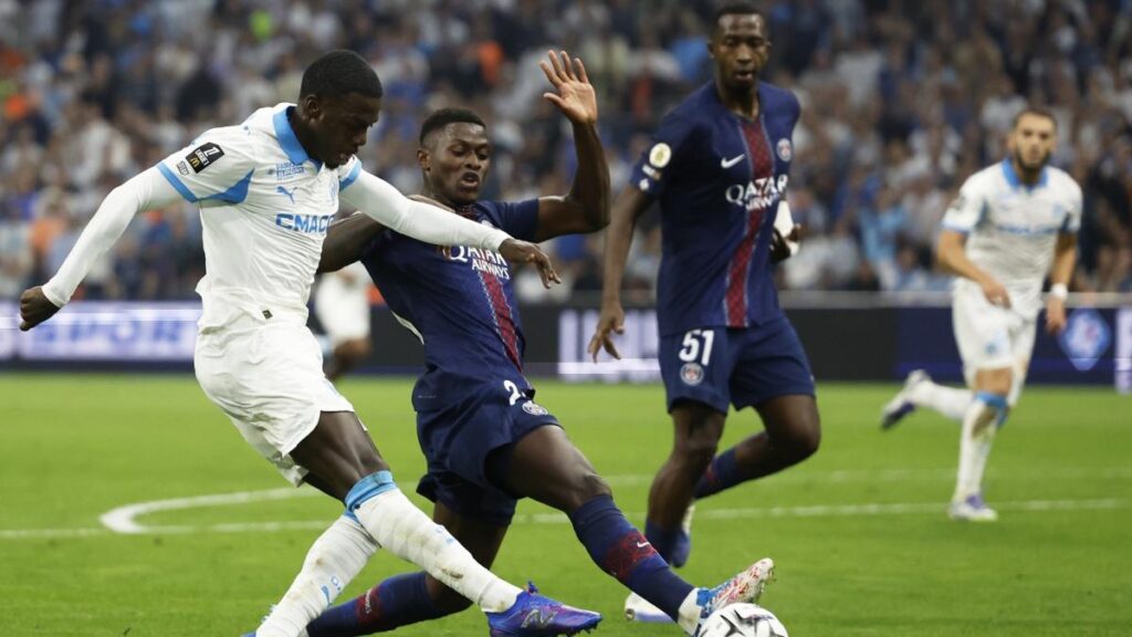 Dès la 5ᵉ minute, Nayef Aguerd ouvrait le score de la tête, profitant d’un centre dévié de Greenwood et d’une sortie ratée du gardien parisien. Marseille dominait la première période, Gouiri touchait la barre, Vitinha et Emerson Palmieri ont failli marquer, tandis que l’OM imposait son physique, un pressing agressif, et défendait bien avec Pavard, Balerdi et Aguerd.