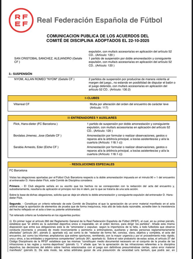 En revanche, Flick n’a pas été sanctionné pour sa présence près des vestiaires après son expulsion ni pour son geste polémique après le but d’Araujo.